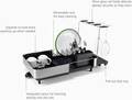 Smart dish rack that expands to twice its size with a stemware rail.